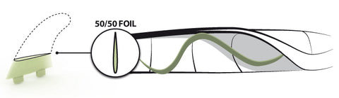 50/50: Mimics the performance of a regular centre fin offering increased pivot with the added advantage of stability and control. (Ideal for all board types and rear fins positioned closer to the stringer)