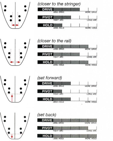 Checking your rear fin position allows you to pick the correct quad set or rear fin that will suit your board.