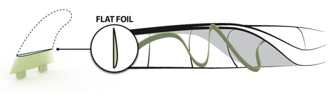 Flat: Mimics the performance of a regular side fin, offering fast transitions between turns, quick release and added hold on rail. (Ideal for boards with a wider tail; performance shortboards; and boards with rear fins positioned close to the rail)