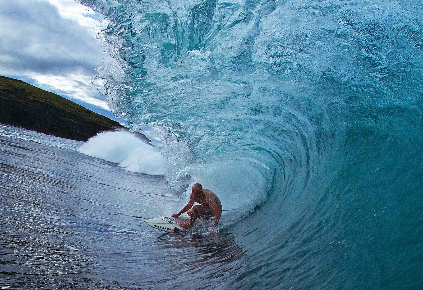 Lo encontrarás surfeando cualquier cosa, ya sea en la nieve y lleno de goma, viviendo del glaciar derretido para obtener agua o palmeras, pantalones cortos y agua de lluvia, desde un pie ocupado y débil hasta escupir barriles vacíos. “¡Solo hace falta una ola divertida y estás emocionado! ¡Sin embargo, conseguir un barril alucinante puede cambiar la vida! Renuncié a todo lo que poseía, posesiones, relaciones, una “vida normal”, pasé por erupciones volcánicas, tsunamis, innumerables terremotos, malaria, viví de la tierra y luché contra los osos para buscar estos momentos”.