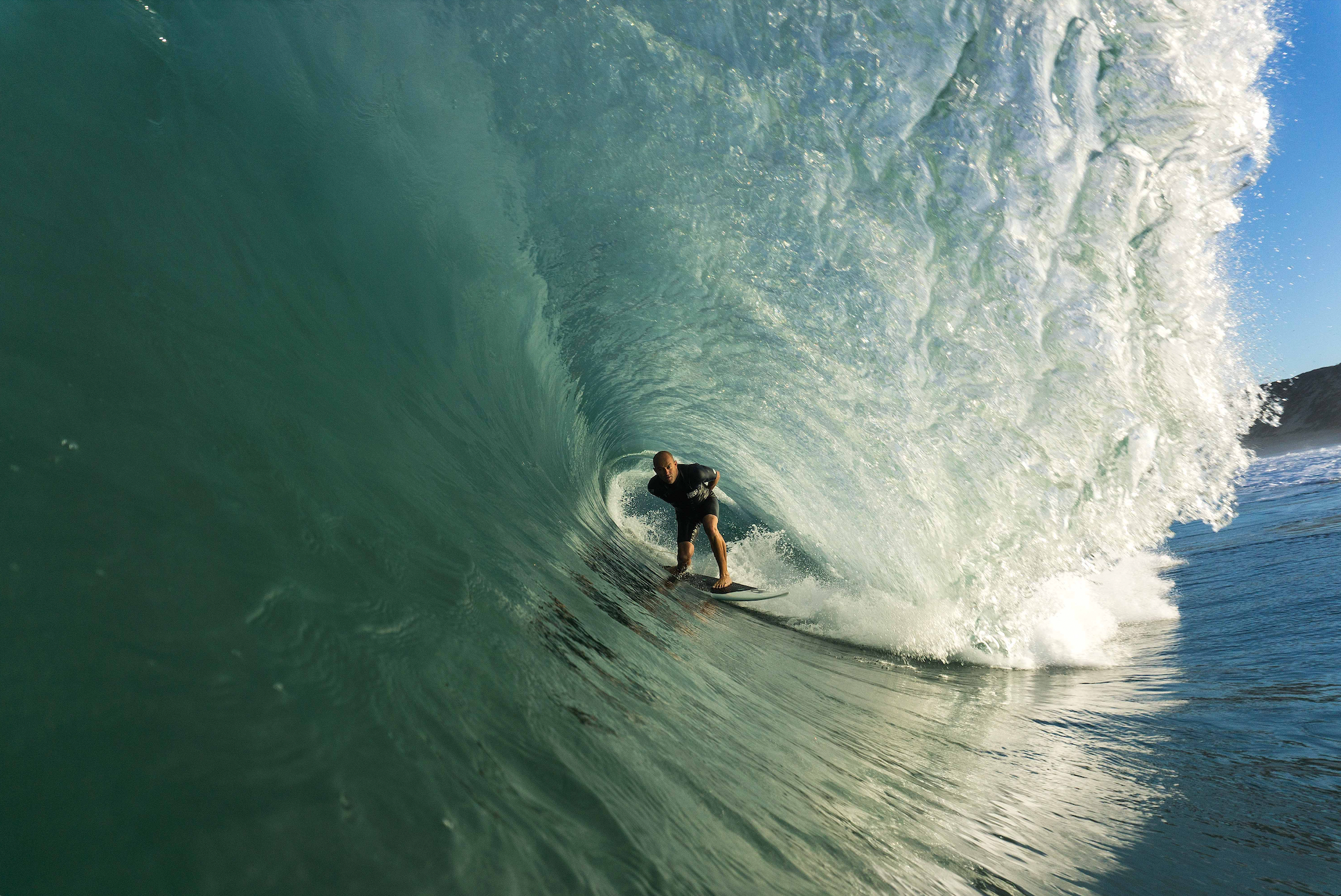 You will find him surfing anything and everything, whether its in the snow and full rubber living off melted glacier for water or palm trees and board shorts and rain water, from busy one foot weak slop to perfect spitting empty barrels. “It only takes one fun wave and you are stoked! Getting a mind blowing barrel though can be a ‘life changer’! I’ve given up everything I own, possessions, relationships, a ‘normal life’, sat through volcanic eruptions, tsunamis, countless earthquakes, malaria, lived off the land and fought off bears to seek these moments.”