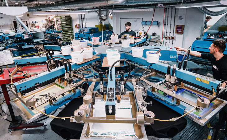 La tecnología se desarrolla en las fábricas de la cadena de suministro circular para mejorar todos los aspectos de la impresión de camisetas, teniendo en cuenta el medio ambiente. Esto incluye trabajar en tintas, software, maquinaria y tecnologías de automatización de menor impacto. Producimos cada producto en tiempo real. En nuestra fábrica del Reino Unido, los productos sólo se imprimen después de haber sido pedidos; no hay desperdicio.
