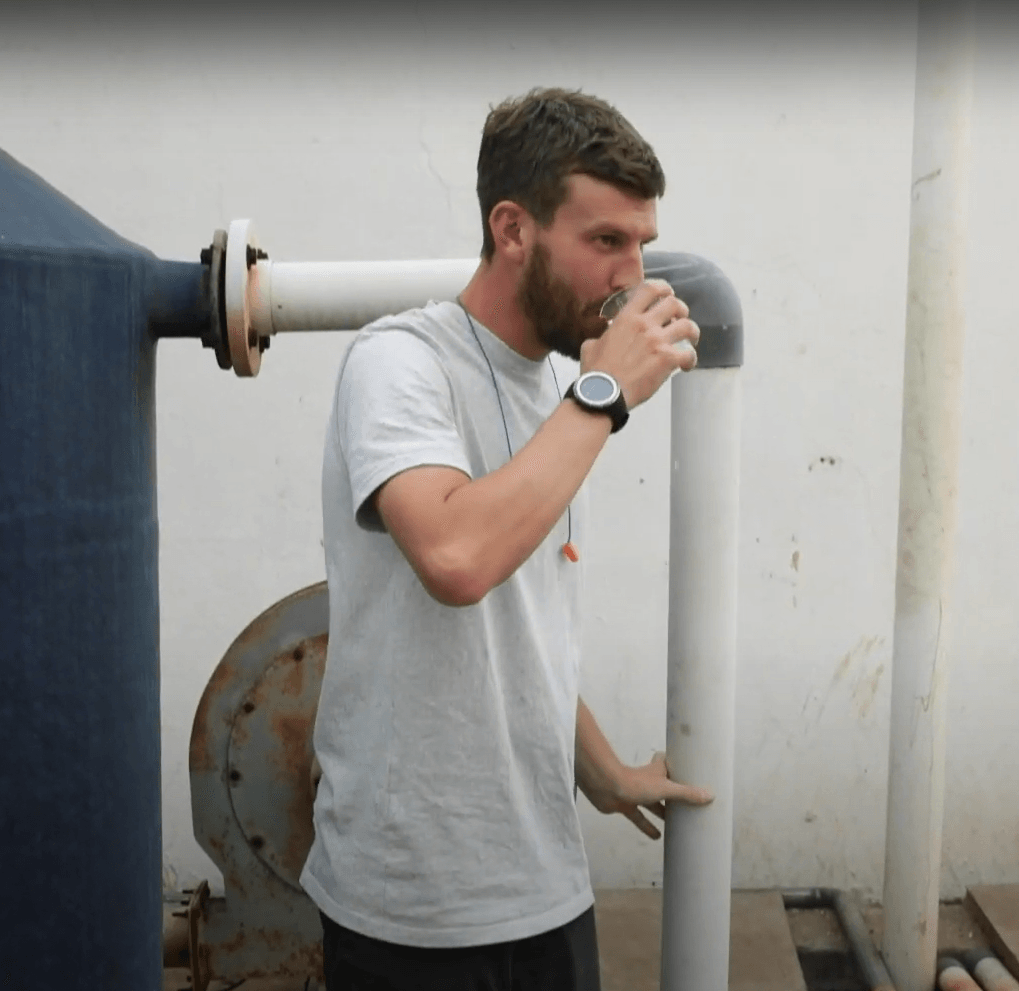 Las aguas residuales procedentes de los efluentes de las tintorerías son una fuente importante de contaminación en la industria de la confección. Donde se tiñen nuestros productos, el agua se recupera, limpia y recircula. Después de decantar y desnatar, el agua se filtra mediante ósmosis inversa y destilación. Básicamente se trata de aspirar agua a través de arena muy fina una y otra vez y luego hervirla. Se vuelve a agregar sal para que el tinte se adhiera y todo el mantillo sobrante se seque y se use para marcas viales. Aproximadamente el 95% del agua se recircula y recupera. Al final, el agua que sale de los filtros y vuelve a circular para ser reutilizada es cristalina, literalmente lo suficientemente limpia como para beber. Una vez limpio, se utiliza como entrada para el siguiente lote. Es un sistema de circuito cerrado.